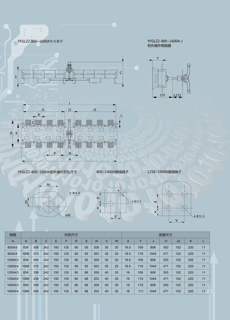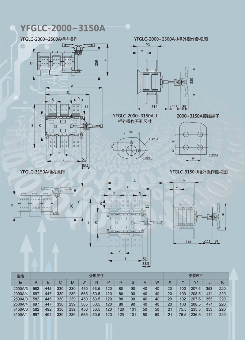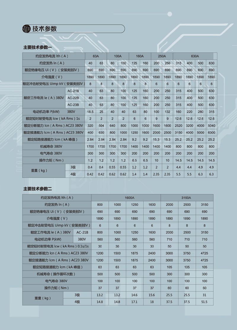 所有触头材料是铜镀银合金,材料强度高、导电能力强,具有两个分离触头面,隔离距离大,在“0”位时,可同时用三把锁锁住手柄,避免误操作。