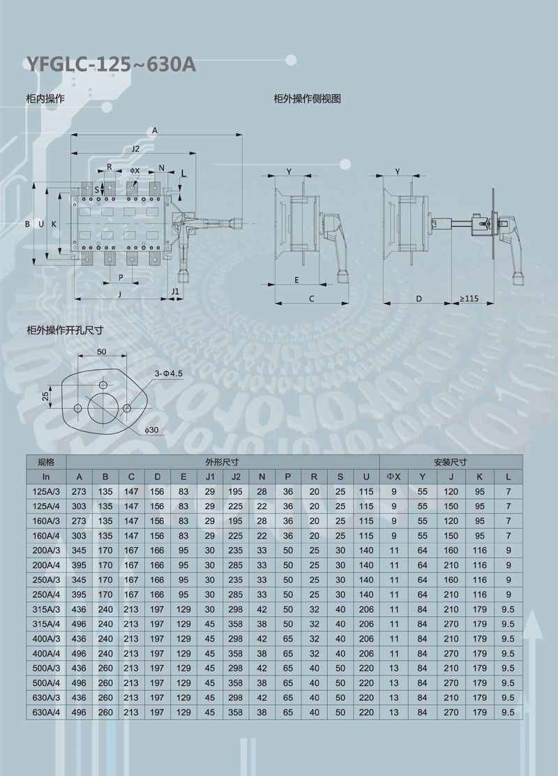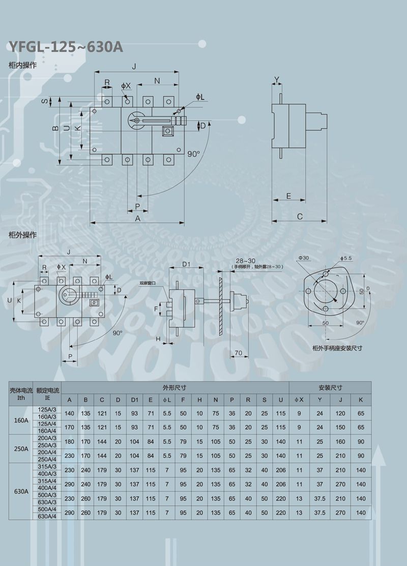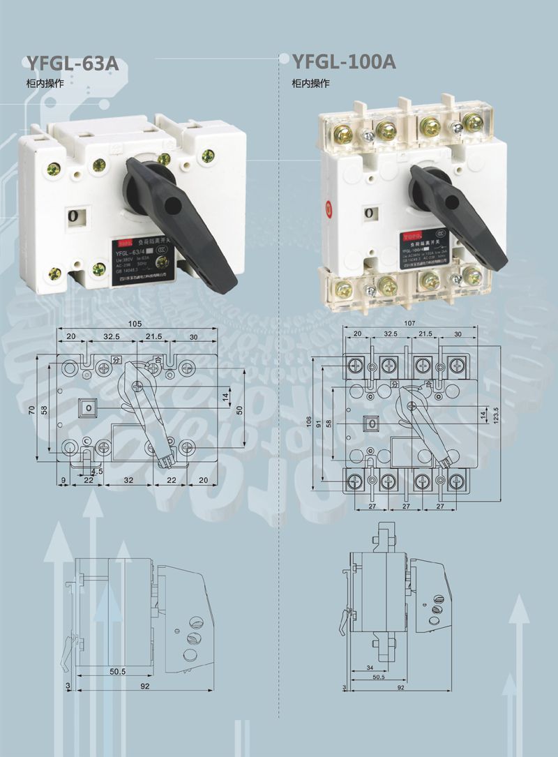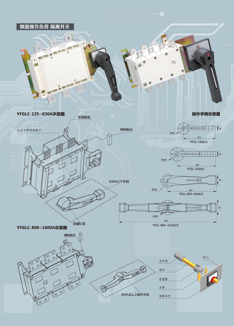 YFGL系列负荷隔离开关主要用于交流50Hz ,额定电压660V。直流额定电压440V ,供电系统中,用于不频繁接通与分断电器及电路的隔离之用。